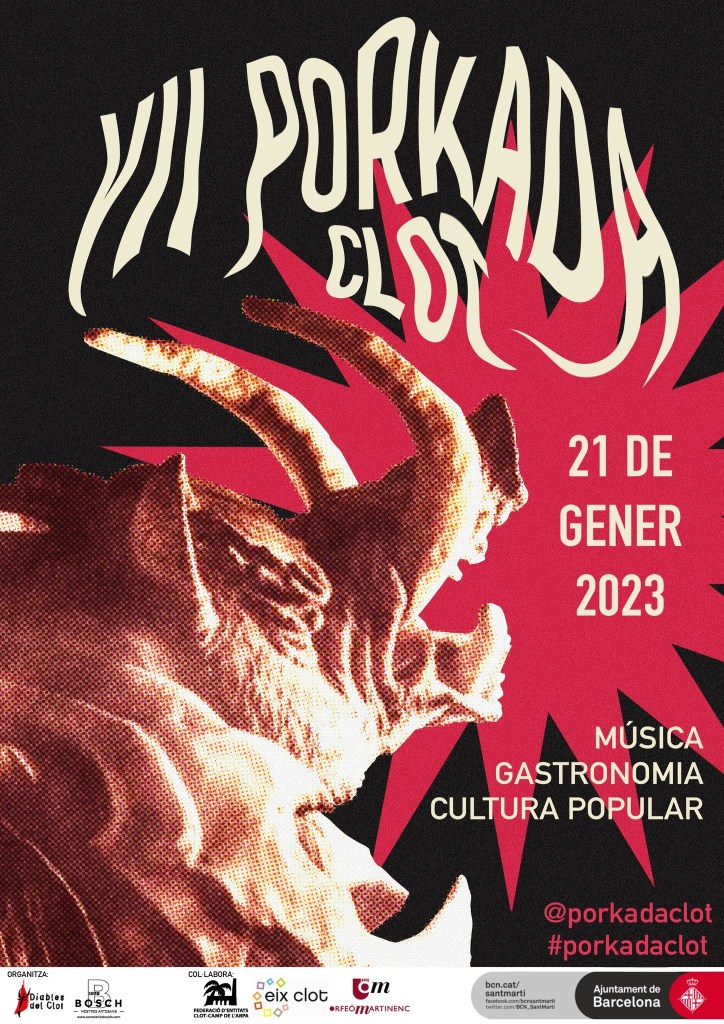 Arriba la VII Porkada Clot. Dissabte 21de gener, a partir de les 11:00h, la Plaça del Mercat del Clot serà, com sempre, el punt neuràlgic de la #PorkadaClot i durant tot el dia hi podreu tastar unes fantàstiques tapes i gaudir de les activitats que hi ha programades.
