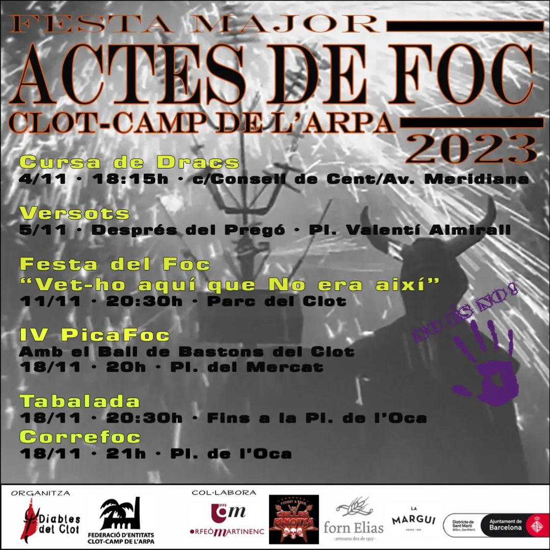 Ja falta menys d’un mes per la Festa Major del Clot-Camp de l’Arpa 2023 !! Tenim les màquines al 100% preparant la Cursa de Dracs, els Versots satírics, la Festa de Foc, el Picafoc i el correfoc…