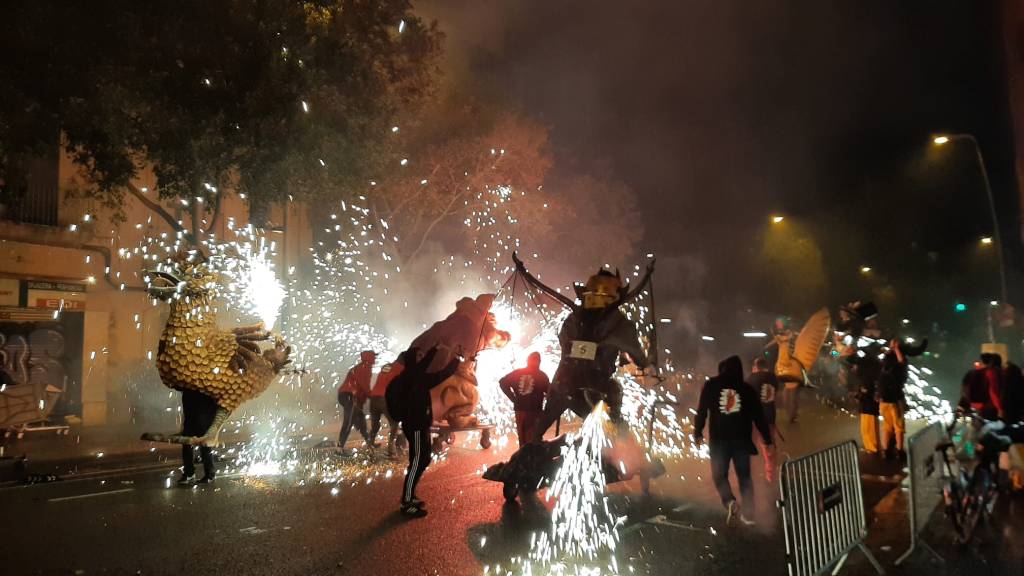 Inici del Correfoc a la Plaça del Mercat. Amb el Pork del Clot. Recorregut: Clot, Escoles, Verneda, St. Joan de Malta, Pl. Valenti almirall (on ferem una paradeta al @cellerpanotxa per agafar forces), St Joan de malta, Verneda, Escultors Claperòs, Rosend Nobas, Pl. Mercat.