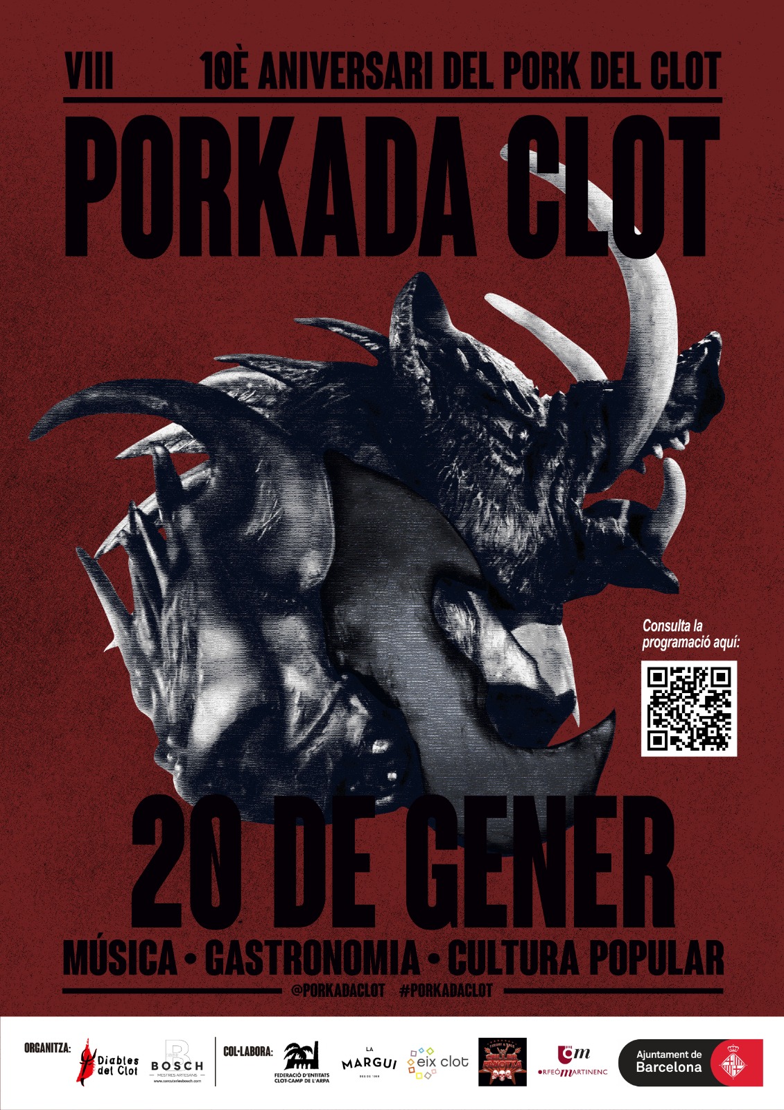 Arriba la VII Porkada Clot. Dissabte 21de gener, a partir de les 11:00h, la Plaça del Mercat del Clot serà, com sempre, el punt neuràlgic de la #PorkadaClot i durant tot el dia hi podreu tastar unes fantàstiques tapes i gaudir de les activitats que hi ha programades.