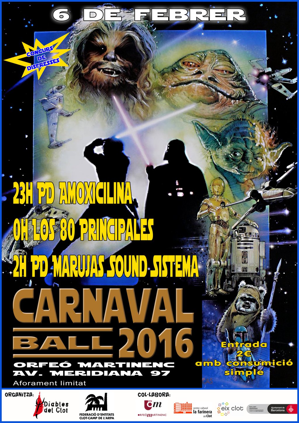 I al vespre, Ball de Carnaval amb concurs de disfresses inclòs! Els personatges de la guerra de les galàxies van envair l’Orfeó Martinenc.